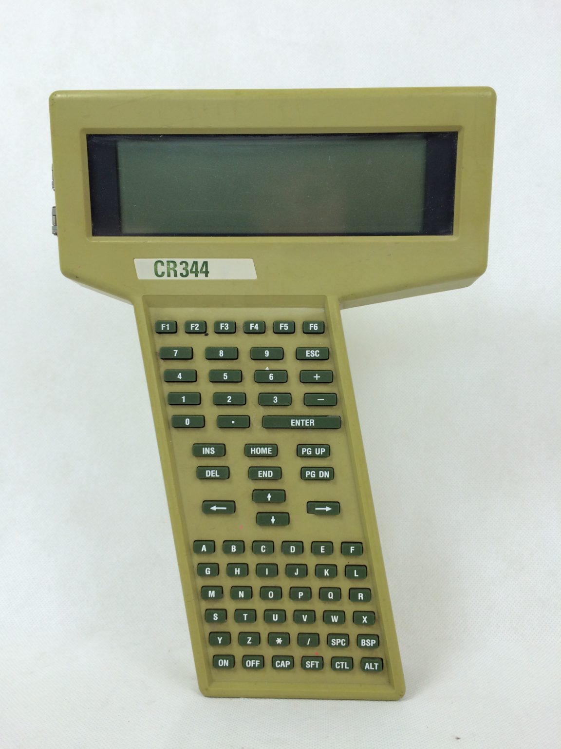 Leica CR344 rugged handheld data collector. This device will boot but gives error code 1165. The primary cause of this error is a failed back up battery on the motherboard. All other components appear to be in working order. Port 1 is missing LEMO cover.